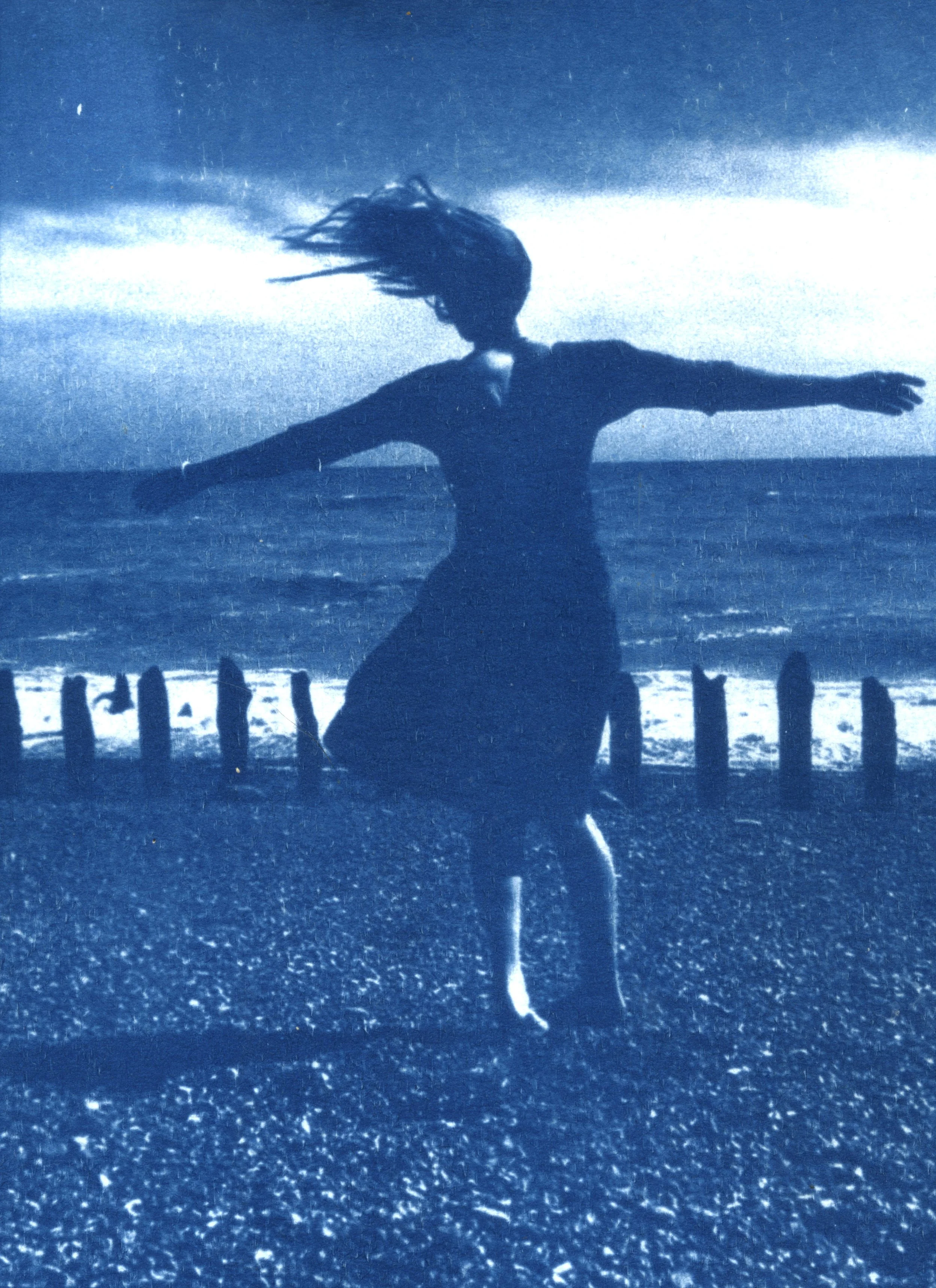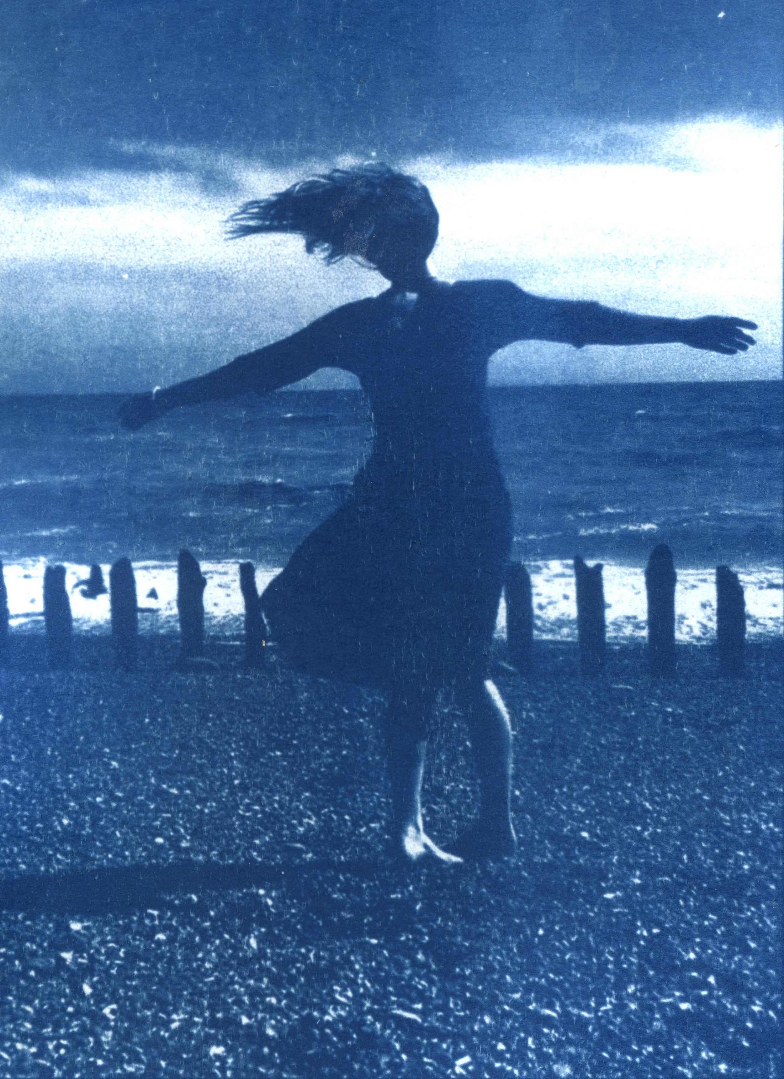 Many of the works included in this project take the form of ‘blue loops’ that exist as never ending circles of movement, spinning on their axis. The looping of the footage appeals to me in its ability to create a recurring moment that flickers and repeats. Reworking the digital pixels into tactile blue cyanotype prints adds a detail and a surface to the imagery, a grain that didn’t exist before. For me the grain is emotional, and is an essential element in the final loops.